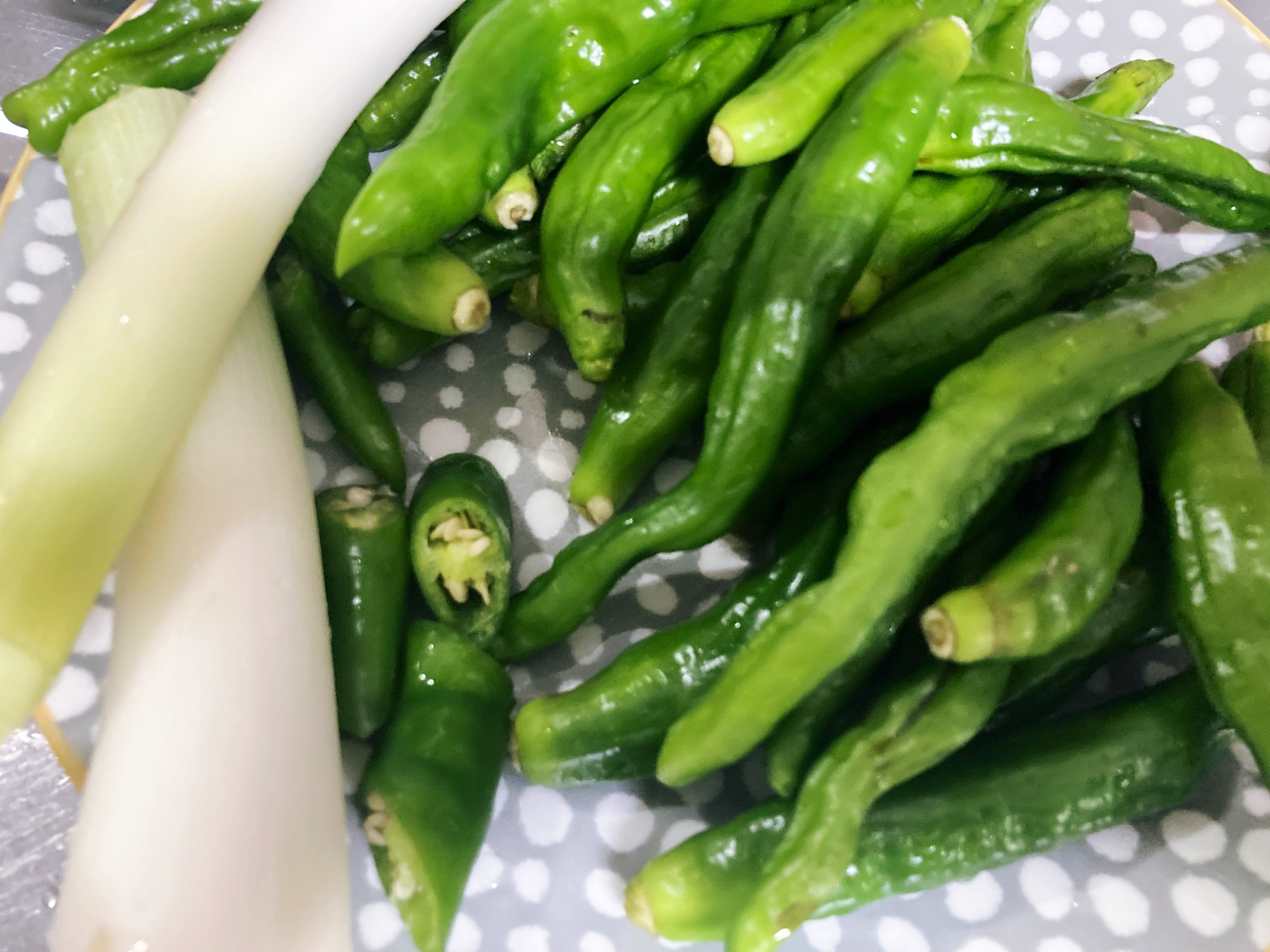 - 꽈리고추 손질: 꽈리고추는 흐르는 물에 깨끗이 씻은 뒤 꼭지를 떼고, 포크나 칼로 2~3군데 구멍을 내어 양념이 잘 배도록 합니다. 전 오늘은 귀찮아서 손질하던 가위 끝으로 푹 푹 늘러서 양념이 잘 베이게 만들었습니다)