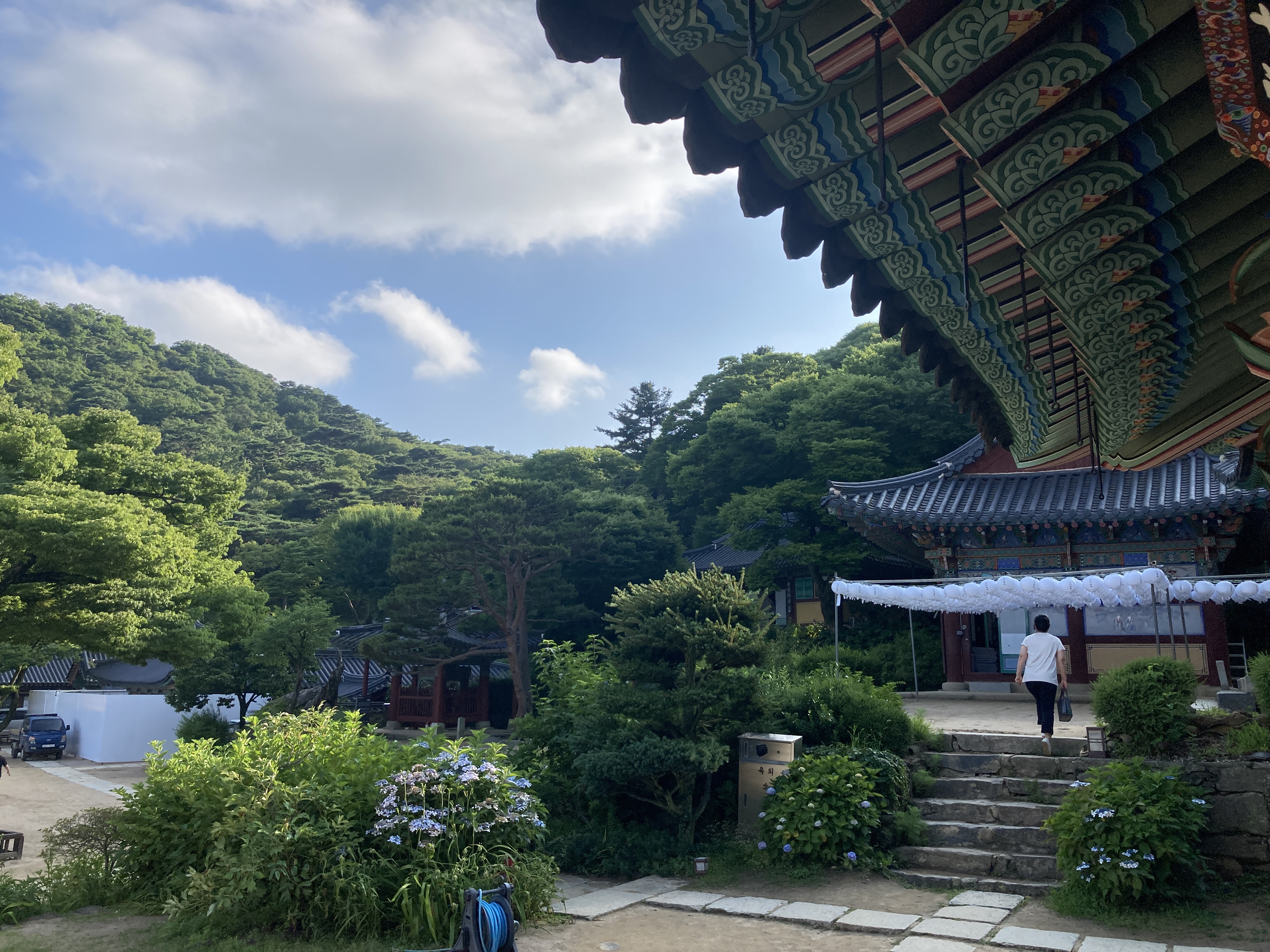 강화도 동막 해수욕장을 둘러본 뒤, 카페에 가러 운전하다가 본 전등사 표지판.평소 절 구경을 좋아하는지라, 가보기로 결정.크리스찬으로 태어났지만, 교회보다는 절의 분위기를 더 좋아하는 나. 산 밑자락에 남문, 동문 등 게이트가 있는데, 그 중하나 주차장에 파킹.하루종일 주차비가 2천원이다. 떙큐~ 주차비 받으시는 분이 "저쪽으로 8분 정도 올라가시면 됩니다~"그래서 올라가는데, 오~신비로운 산의 분위기 너무 좋다.그런데 오르막 길이라 힘들었다.한여름에는 정말 더울 듯. 엄청 크고 멋진 절이다. 700년이 넘은 큰 나무들도 많다. 엄청난 포스를 풍기는 오래된 나무들이 정말 멋지다. 앵두나무들이 얼마나 탐스럽고 멋진지.몇개 따서 먹어보니, 달다.앵두 정말 좋아하는데 맘같아서는 왕창 따오고 싶었다. ㅋ..